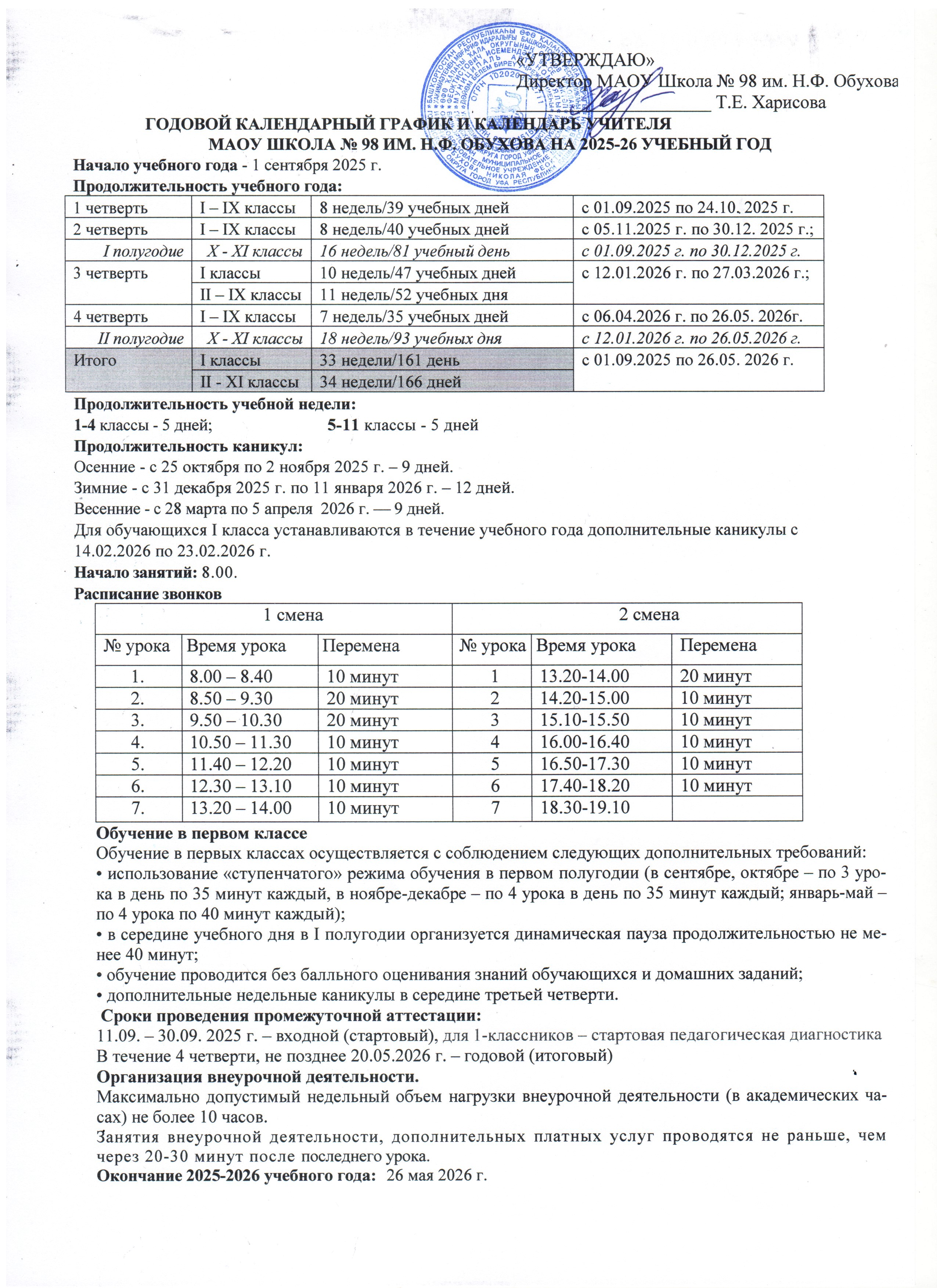 Календарный график и расписание звонков на 2025-2026 учебный год