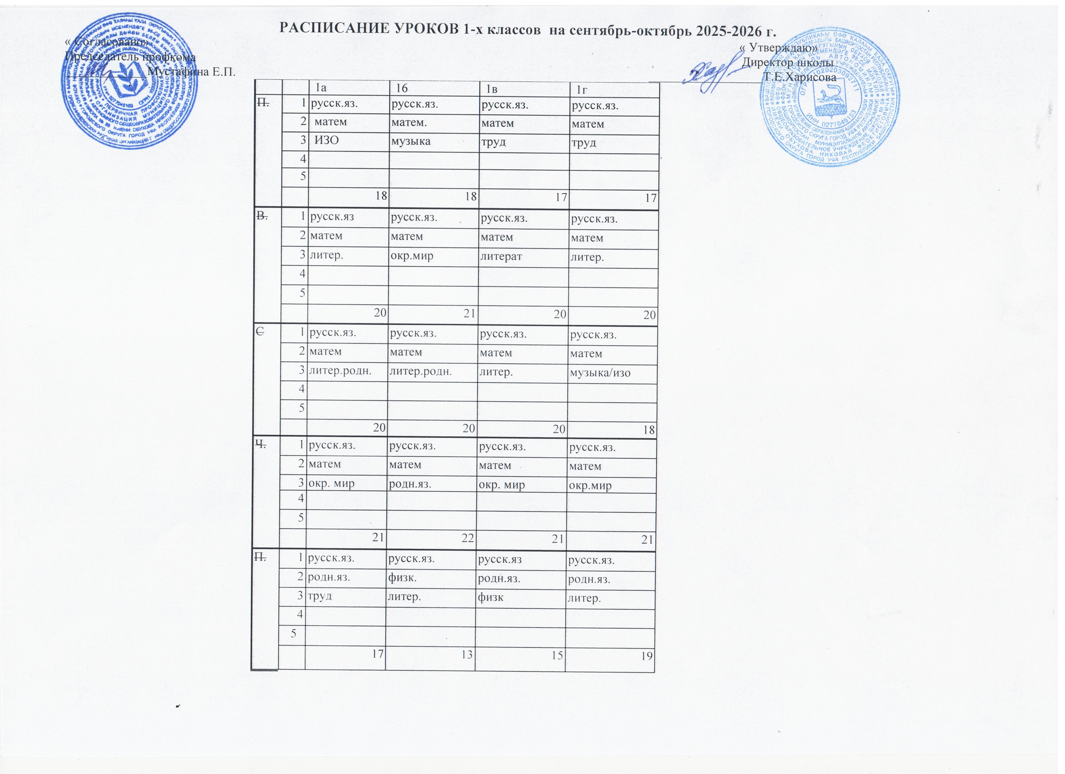 Расписание 1 классов на 1 четверть 2025-2026 учебного года
