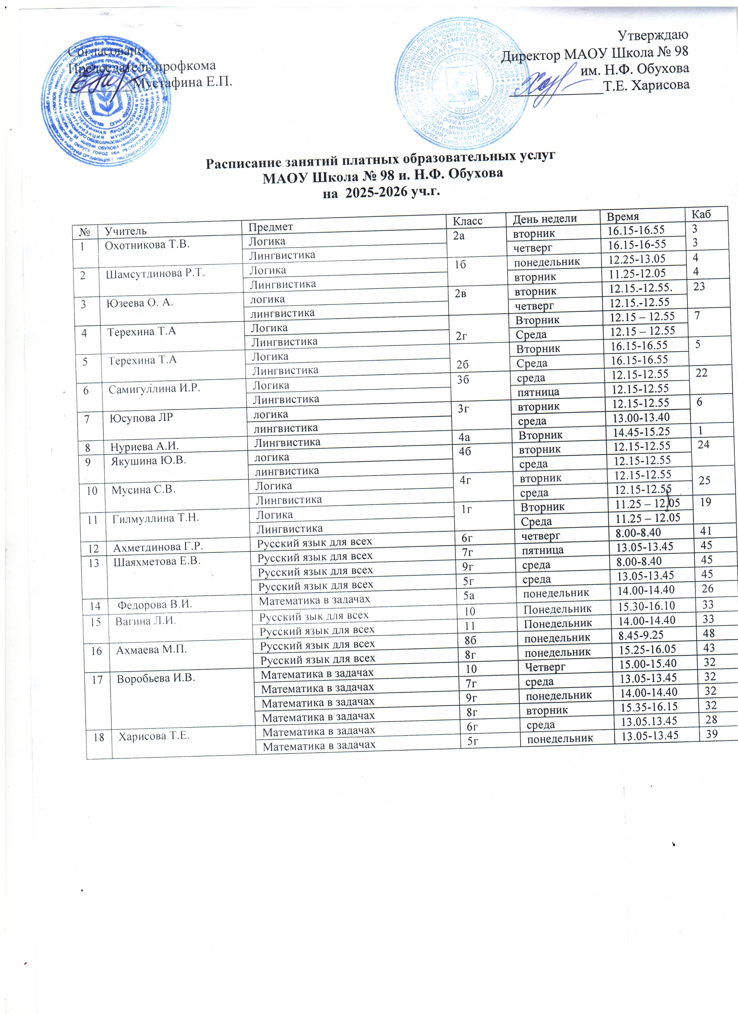 Расписание уроков 10-11 классов на 2025-2026 учебный год