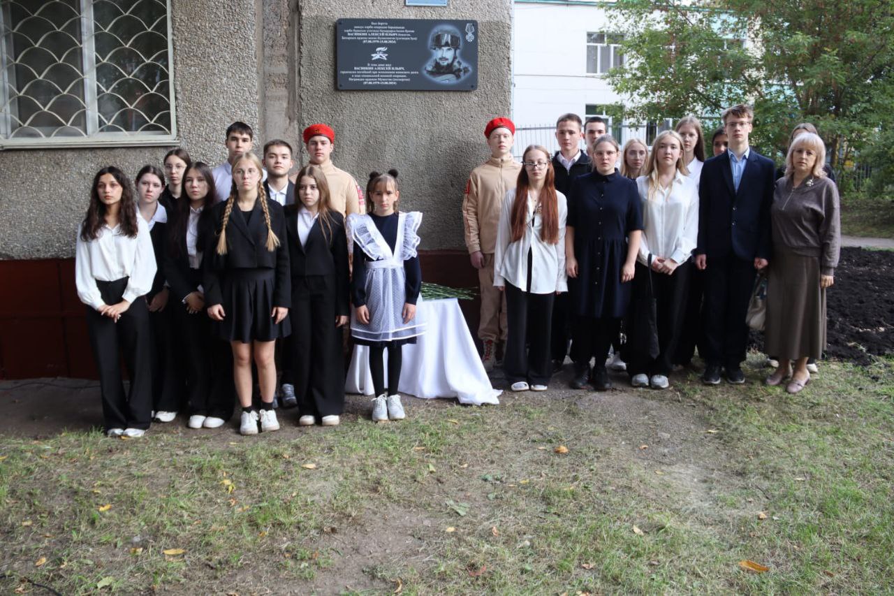 📢18 сентября ученики 9"Г", 10 "А" и 11 "А" приняли участие в церемонии открытия мемориальной доски в память о погибшем участнике СВО - Алексее Ильиче Васинкине.